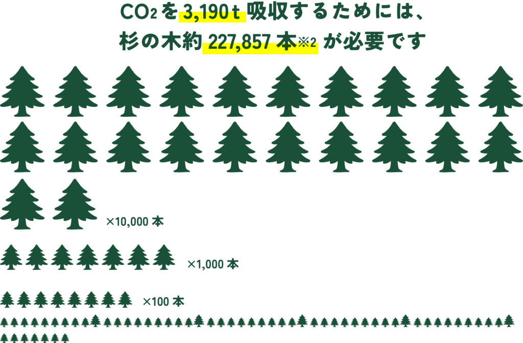 ※2 杉の木1本のCO₂年間吸収量14kgで算出