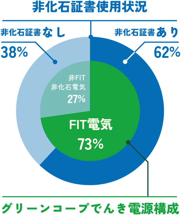 ※1 FIT非化石証書とは、固定価格買取制度を利用してつくられた再生可能エネルギー(太陽光・風力・水力・地熱・バイオマス)の電気に含まれる「CO2を排出しないという環境価値」を証書化したものです。